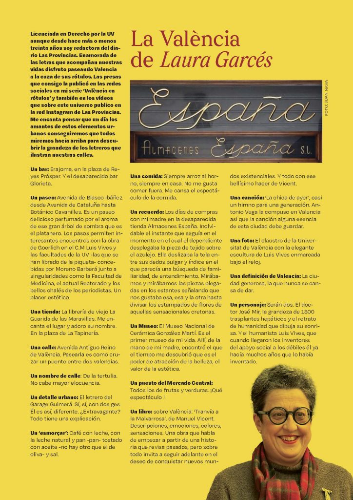 Licenciada en Derecho por la UV aunque desde hace más o menos treinta años soy redactora del diario Las Provincias. Enamorada de las letras que acompañan nuestras vidas disfruto paseando Valencia a la caza de sus rótulos. Las presas que consigo la publicó en las redes sociales en mi serie ‘València en rótulos’ y también en los vídeos que sobre este universo publico en la red Instagram de Las Provincias. Me encanta pensar que un día los amantes de estos elementos urbanos conseguiremos que todos miremos hacia arriba para descubrir la grandeza de los letreros que ilustran nuestras calles.